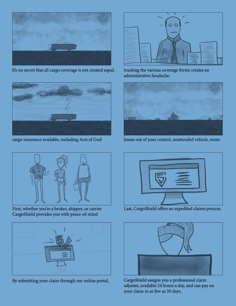Truckstop.com was looking for a different way to tell a story of a new service they were offering, so we set about to create an animation to illustrate the benefits of cargo insurance. We arrived at this method as it was a more effective way to show the details without having to film the various situations. This included creating different characters representing the different roles in the freight industry as well as designing the various scenarios used to explain the story.